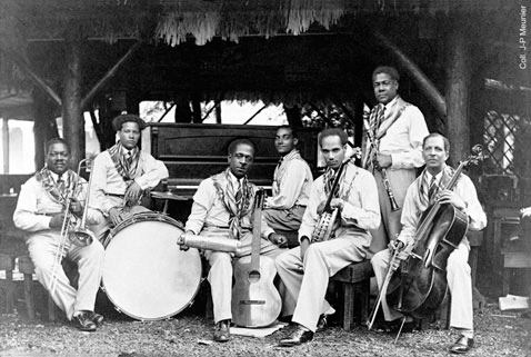 Concretamente en el pabellón de Guadalupe se representó una bahía de la isla, con un gran lago y un arroyo, una playa de arena blanca y un gran faro, y como representación de la cultura de la isla, una banda de música caribeña actuaba cada día de 4 a 7 y de las 9 hasta medianoche. La banda interpretaba un curioso estilo que pocos franceses habían escuchado hasta entonces. Ese estilo se denominaba «Beguine», una evolución del bidgin belé, el baile criollo originario de esas islas emparentado directamente con África que se tocaba únicamente con percusión y cantos de llamada y respuesta (los mismos cantos de que influenciarían al Blues). De todas maneras la banda que actuaba cada día en el pabellón presentaba un estilo más moderno al que además de percusión se le unían el banjo, el piano, la guitarra, el trombón y el clarinete. Era el resultado de haber mezclado los bailes criollos con la música importada por los colonizadores franceses, un estilo que ya llevaba un tiempo asentado en las Antillas y que había sido de enorme influencia en el Jazz americano y que ahora iba a invadir Francia. Todo gracias al líder de la banda, un calrinetista que respondía al nombre de Alexandre Stellio que con el tiempo iba a dar a conocer el beguine a nivel internacional.