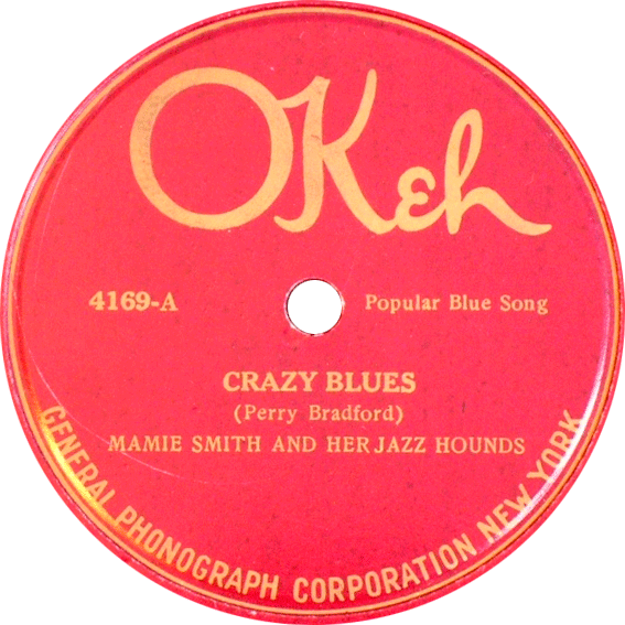 Rebuscando un poco por internet (¡Dios te salve internet!) Un nombre conocido apareció de repente: Mamie Smith y sus Jazz Hounds. La gran Mamie fue nada más y nada menos en la primera cantante afro americana en grabar un Blues, convirtiéndose de la noche a la mañana en una de las cantantes más famosas de su época. Todo ello fue gracias a la insistencia del pianista, compositor y líder de banda Perry Bradford, quien ya por 1919 intentaba abrir el mercado americano a la auténtica música popular negra. Tras varios intentos en distintas compañías fue el director musical de Okeh Records, Fred Hagar, quien vio las posibilidades comerciales de editar auténtica música Blues (Hagar, dicho sea de paso, también era músico y editó varios discos dirigiendo bandas con su seudónimo, Milo Rega). Fue así como, a pesar de las presiones de varias compañías que amenazaban con boicotear a Okeh si grababa a músicos afro americanos, Bradford optó por contratar a Mamie Smith para la que compuso un par de temas para su primer disco, editado en 1920. Eso sí, le acompañaron músicos blancos. El disco tuvo un éxito discreto, pero el suficiente para que Hager recapacitara y accediera a las presiones de Bradford y dejar así que Mamie grabara con su propia banda, bautizados como los Jazz Hounds. Como se decía en los 60, black is beautiful, y así fue como el público americano acabó enloqueciendo con la edición de «Crazy Blues/It’s right here for you», el primer disco de auténtico Blues editado en Estados Unidos. Se dice que el disco vendió más de un millón de copias, lo cual siempre es difícil de demostrar en un época en que no habías listas de ventas, pero sí que es verdad que catapultó la carrera de Mamie Smith convirtiéndola en una estrella, a partir de entonces conocida como La Reina del Blues.