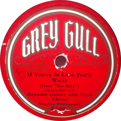 Recuerdo que el día que lo recibí saltaba de alegría. ¡Vaya tema! Es una obra perfecta. Una estupenda combinación de pop, jazz y hawaiiano con una increíble melodía vocal y un Nawahi espléndido en plena cumbre creativa. Él mismo se encarga del ukelele al inicio del tema para cambiar a la steel guitar cuando se acerca el solo (era tan virtuoso con el ukelele como con la guitarra), que además es uno de mis favoritos. Más tarde regrabaría el mism otema para el sello Victor, pero esta es sin duda la mejor versión. En fin, para qué alargarse más. Os dejo con este asombroso tema y su cara B, un precioso vals. Digitalizado de mi colección y listo para descargar.