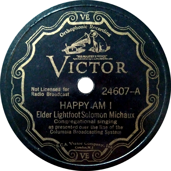 No es entonces extraño que el sello Victor se interesara por él. Entre 1933 y 1934 Michaux grabó una serie de discos, algunos grabaciones de sus sermones en directo, pero muchos no se sabe si llegaron a ser editados. Por suerte hay uno que sí lo fue, y es esta pequeña joya con su tema insignia la que presento hoy. «Happy Am I» fue su canción más famosa y que llegó a convertirse en una especie de himno hasta el punto que a menudo Michaux se promocionó como el Happy am I preacher. Hay una cosa que me fascina de esta grabación y del estilo de Michaux, y es que se aleja mucho del Gospel habitual al que estamos acotumbrados. No hay una influencia cara del Blues o del Stomp, ni tan sólo de los gritos de pregunta y respuesta. Pero así y todo es música, nunca más bien dicho, celestial, sencilla y directa, casi como un mantra, con un juego de voces fantástico. Como siempre, digitalizado de mi colección. Espero que lo disfruten.