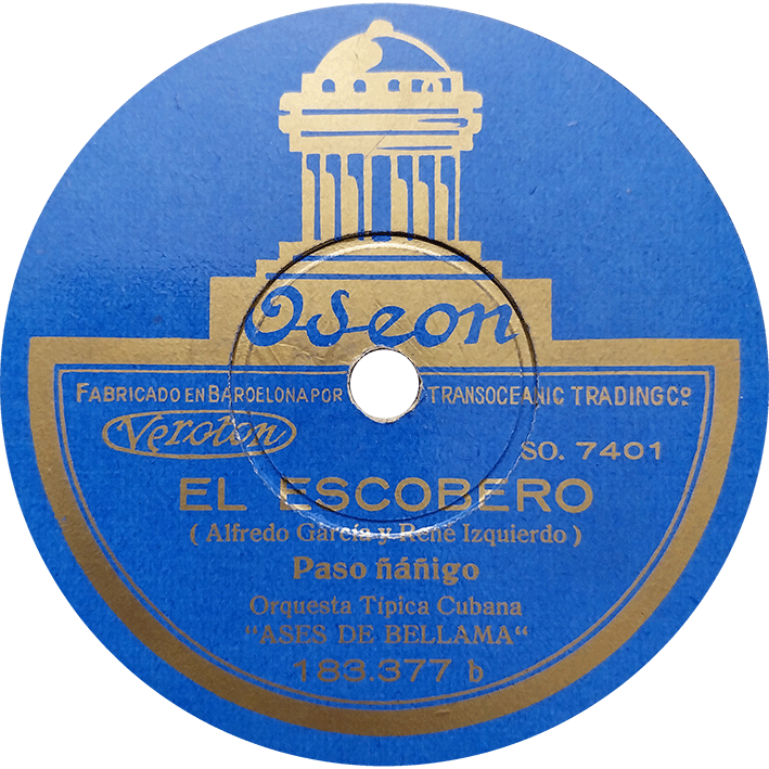 En el caso de «El Escobero», el paso ñáñigo grabado por los Ases de Bellamar, tenemos de nuevo una mezcla de cantos abakuá que parecen haber sido tomados de la tradición por lo que es probable que al menos uno de los dos compositores fuera miembro. El tema consta en el disco compuesto por Alfredo García y René Izquierdo, y una búsqueda entre los archivos oficiales de la Gaceta de Madrid muestra que el «canto indígena cubano» se registró oficialmente al año siguiente, concretamente el 7 de agosto de 1933. En el registro se especifica que Alfredo García es el compositor de la música mientras que René Izquierdo y Ruz (sic) fue autor de la letra. ¿Significa eso que nuestro René era miembro de los Abakuá? Imagino que será otro de los enigmas que puede quedar sin resolver. Y ya que estamos en ello… ¿Quién es Alfredo García? ¿Otro integrante del grupo o un músico conocido de René?