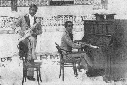 Una de las grandes bazas de la banda Estrellas Negras (como se conoceríaa la Black Stars Band en adelante) era la de contar con un saxofonista que ganaría mucha fama en los próximos años: Aquilino, «el saxofón humano«. Este cubano afincado en España se hará famoso por sus interpretaciones del flamenco al saxofón, llegando a grabar en España para diversos sellos con guitarristas del nivel de Sabicas o Manolo el de Badajoz. En julio de 1932 la banda actuando en Madrid, y todavía se nombra a René como director de la banda. Pero poco tiempo más tarde su nombre ya desaparece y la banda parece ya pasar a ser dirigida por el propio Aquilino, como mínimo ya en el mes de octubre. Entre varias reseñas e incluso fotos me ha chocado ver una imagen de noviembre de 1932. Esta foto pertenece a un cartel de una actuación especial para el 27 de noviembre en el teatro Pavón de Madrid, y en concreto muestra a Aquilino posando en el ruedo junto a un pianista del que no se sabe el nombre. Si bien podría bien ser el sustituto de René, también es lógico pensar que la foto debía haber sido tomada anteriormente, por lo que, ¿podría ser el mismo René Izquierdo el que lo acompaña? Sería lógico que el director y la máxima estrella del espectáculo se fotografiaran juntos, pero a falta de confirmación lo dejaremos en duda.